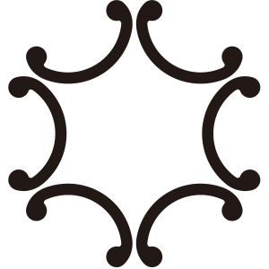 隅立て外六つ鐶紋は、6つの『鐶』を頭を合わせて寄せて角を立てた六角形の形に描く。