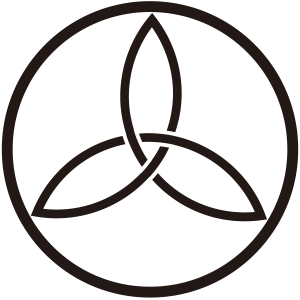 | 金輪紋は法具の錫杖の上部についている金属鐶のこと。遊鐶を鳴らすことで厄を避けると言われる。『輪違い紋』に似ているがより細い輪で書かれている。他にも『釜敷紋』とも混同されやすい。 |