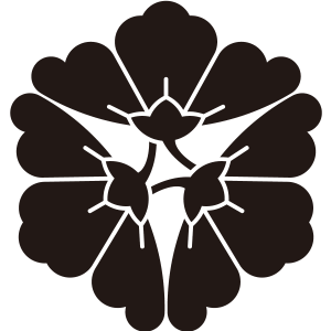 | 唐花紋とは、多種多様な花形の紋章の総称で、文様としての美しさから家紋となった。唐花は大陸伝来の古い文様でモチーフとなるような植物は実在しない。文様としては奈良時代にはすでに用いられており、正倉院の御物などにもみれる。 花弁の先端が3つの弧で描かれるのが特徴。唐花の花弁は3〜7弁からなるが、4弁のものは「花菱」「花角」として別に扱う。 |
