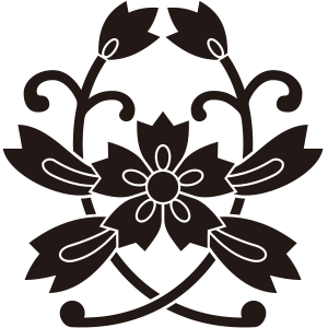 | 唐花紋とは、多種多様な花形の紋章の総称で、文様としての美しさから家紋となった。唐花は大陸伝来の古い文様でモチーフとなるような植物は実在しない。文様としては奈良時代にはすでに用いられており、正倉院の御物などにもみれる。 花弁の先端が3つの弧で描かれるのが特徴。唐花の花弁は3〜7弁からなるが、4弁のものは「花菱」「花角」として別に扱う。 |
