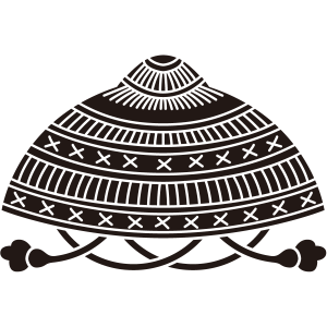 | 頭に直接かぶる「被り笠」のこと。市女笠、陣笠、唐人笠、花笠などたくさんの種類がある。その為、紋のバリエーションも豊富である。 |