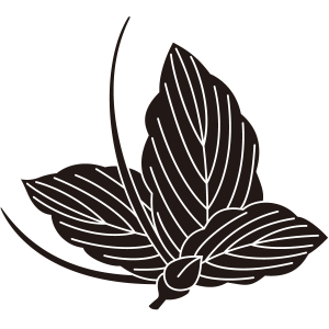 柏蝶紋は、3枚の葉を『飛び蝶』に見立てた形に描く。
