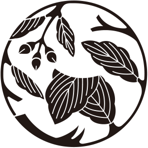 実付き柏枝丸紋は、柏の枝を丸く巡らせ、中に3つの柏の実と折れた柏の葉を描く。