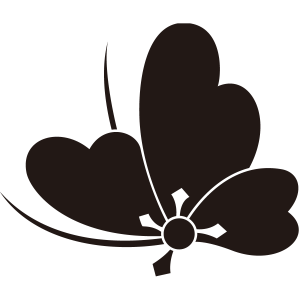 片喰飛び蝶紋は、片喰の葉を『飛び蝶』に見立てた形に描く。