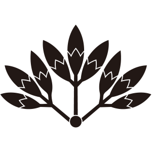 枝片喰の実紋は、片喰の実を3枚ずつ付けた3本の葉柄を扇状に並べて描く。