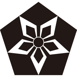 五角内に五つ剣紋は、地と反対色の五角形を描いて、逆さにした星形に色を抜いて、その中に『五つ剣』描く。
