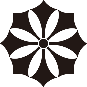 八つ剣紋は、8本の剣を車状に集め均等に並べて、1本の剣が真上を向くように描く。
