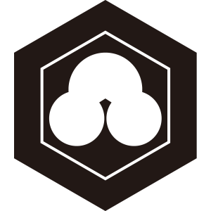 | 亀甲紋は亀の甲羅のような正六角形の連続紋四様から紋章化したもの。古代より世界中で使用された文様で日本には大陸から伝わり、5世紀以降の古墳からもその図柄が出土している。幾何学的な美しさと長寿の亀の甲羅を連想させる単純な形で瑞祥的な意義により家紋となった。 |