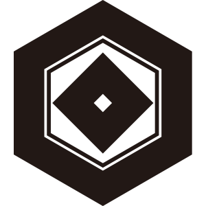 | 亀甲紋は亀の甲羅のような正六角形の連続紋四様から紋章化したもの。古代より世界中で使用された文様で日本には大陸から伝わり、5世紀以降の古墳からもその図柄が出土している。幾何学的な美しさと長寿の亀の甲羅を連想させる単純な形で瑞祥的な意義により家紋となった。 |