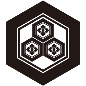 | 亀甲紋は亀の甲羅のような正六角形の連続紋四様から紋章化したもの。古代より世界中で使用された文様で日本には大陸から伝わり、5世紀以降の古墳からもその図柄が出土している。幾何学的な美しさと長寿の亀の甲羅を連想させる単純な形で瑞祥的な意義により家紋となった。 |