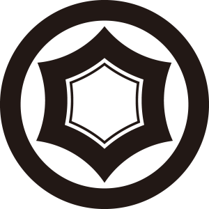 | 亀甲紋は亀の甲羅のような正六角形の連続紋四様から紋章化したもの。古代より世界中で使用された文様で日本には大陸から伝わり、5世紀以降の古墳からもその図柄が出土している。幾何学的な美しさと長寿の亀の甲羅を連想させる単純な形で瑞祥的な意義により家紋となった。 |
