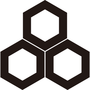 | 亀甲紋は亀の甲羅のような正六角形の連続紋四様から紋章化したもの。古代より世界中で使用された文様で日本には大陸から伝わり、5世紀以降の古墳からもその図柄が出土している。幾何学的な美しさと長寿の亀の甲羅を連想させる単純な形で瑞祥的な意義により家紋となった。 |