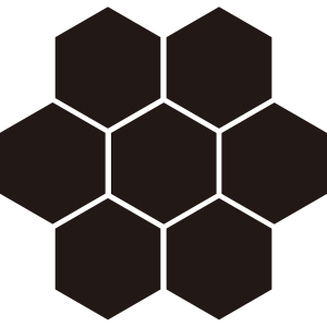 | 亀甲紋は亀の甲羅のような正六角形の連続紋四様から紋章化したもの。古代より世界中で使用された文様で日本には大陸から伝わり、5世紀以降の古墳からもその図柄が出土している。幾何学的な美しさと長寿の亀の甲羅を連想させる単純な形で瑞祥的な意義により家紋となった。 |