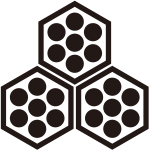 | 亀甲紋は亀の甲羅のような正六角形の連続紋四様から紋章化したもの。古代より世界中で使用された文様で日本には大陸から伝わり、5世紀以降の古墳からもその図柄が出土している。幾何学的な美しさと長寿の亀の甲羅を連想させる単純な形で瑞祥的な意義により家紋となった。 |
