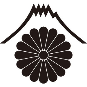 富士山に十六葉菊紋は、16枚の花弁を持つ『十六葉菊』を描いて、その上に富士山の輪郭を描く。