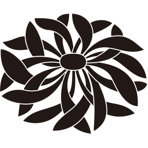 乱れ菊紋は、花弁を不規則に乱れさせた菊の花を斜め上から見た姿で描く。