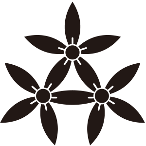 三つ持ち合い細桔梗紋は、3つの『細桔梗』を互いの2枚の花弁を持ち合う形に描く。