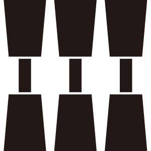 三つ並び杵紋は、3本の『手杵』を縦向きに横に並べて描く。