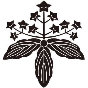 | 桐はアオギリ科の落葉広葉樹。鳳凰が住む嘉木とされる梧桐(あおぎり)に由来する家紋だが、デザイン的には別種の白桐が元となっている。もともと天皇家の紋章だが、功を挙げた臣下に賜与されることにより次第に広まっていった。梅、藤、木瓜、片喰とともに五大家紋の一つ。 |