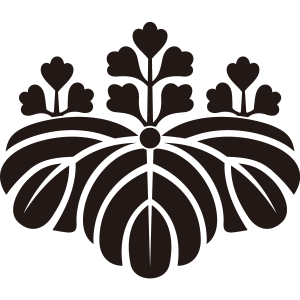 | 桐はアオギリ科の落葉広葉樹。鳳凰が住む嘉木とされる梧桐(あおぎり)に由来する家紋だが、デザイン的には別種の白桐が元となっている。もともと天皇家の紋章だが、功を挙げた臣下に賜与されることにより次第に広まっていった。梅、藤、木瓜、片喰とともに五大家紋の一つ。 |