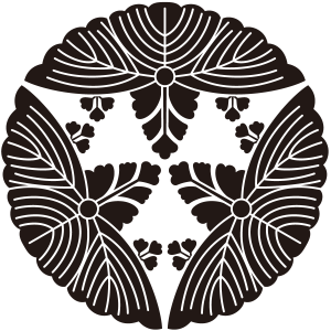 | 桐はアオギリ科の落葉広葉樹。鳳凰が住む嘉木とされる梧桐(あおぎり)に由来する家紋だが、デザイン的には別種の白桐が元となっている。もともと天皇家の紋章だが、功を挙げた臣下に賜与されることにより次第に広まっていった。梅、藤、木瓜、片喰とともに五大家紋の一つ。 |
