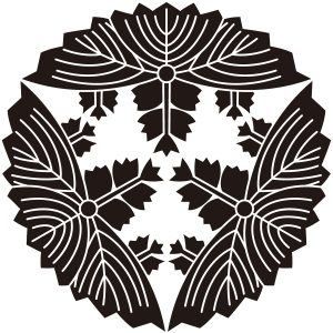 | 桐はアオギリ科の落葉広葉樹。鳳凰が住む嘉木とされる梧桐(あおぎり)に由来する家紋だが、デザイン的には別種の白桐が元となっている。もともと天皇家の紋章だが、功を挙げた臣下に賜与されることにより次第に広まっていった。梅、藤、木瓜、片喰とともに五大家紋の一つ。 |