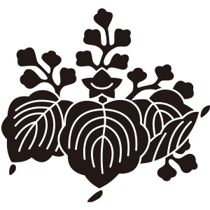 | 桐はアオギリ科の落葉広葉樹。鳳凰が住む嘉木とされる梧桐(あおぎり)に由来する家紋だが、デザイン的には別種の白桐が元となっている。もともと天皇家の紋章だが、功を挙げた臣下に賜与されることにより次第に広まっていった。梅、藤、木瓜、片喰とともに五大家紋の一つ。 |