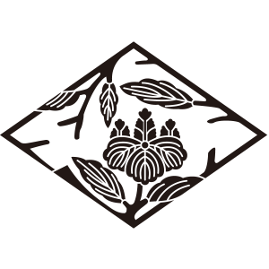 | 桐はアオギリ科の落葉広葉樹。鳳凰が住む嘉木とされる梧桐(あおぎり)に由来する家紋だが、デザイン的には別種の白桐が元となっている。もともと天皇家の紋章だが、功を挙げた臣下に賜与されることにより次第に広まっていった。梅、藤、木瓜、片喰とともに五大家紋の一つ。 |