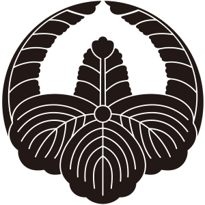 | 桐はアオギリ科の落葉広葉樹。鳳凰が住む嘉木とされる梧桐(あおぎり)に由来する家紋だが、デザイン的には別種の白桐が元となっている。もともと天皇家の紋章だが、功を挙げた臣下に賜与されることにより次第に広まっていった。梅、藤、木瓜、片喰とともに五大家紋の一つ。 |