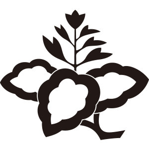 | 桐はアオギリ科の落葉広葉樹。鳳凰が住む嘉木とされる梧桐(あおぎり)に由来する家紋だが、デザイン的には別種の白桐が元となっている。もともと天皇家の紋章だが、功を挙げた臣下に賜与されることにより次第に広まっていった。梅、藤、木瓜、片喰とともに五大家紋の一つ。 |