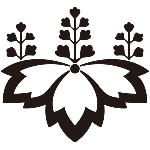 | 桐はアオギリ科の落葉広葉樹。鳳凰が住む嘉木とされる梧桐(あおぎり)に由来する家紋だが、デザイン的には別種の白桐が元となっている。もともと天皇家の紋章だが、功を挙げた臣下に賜与されることにより次第に広まっていった。梅、藤、木瓜、片喰とともに五大家紋の一つ。 |