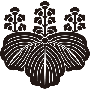 | 桐はアオギリ科の落葉広葉樹。鳳凰が住む嘉木とされる梧桐(あおぎり)に由来する家紋だが、デザイン的には別種の白桐が元となっている。もともと天皇家の紋章だが、功を挙げた臣下に賜与されることにより次第に広まっていった。梅、藤、木瓜、片喰とともに五大家紋の一つ。 |
