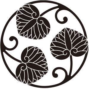 | 河骨紋は、浅い池や沼などに繁殖する河骨(こうほね)の葉や花をモチーフとした家紋。河骨は根茎が白くゴツゴツしており白骨に見えることから、その名がついた。江戸時代に将軍家の家紋として『葵紋』の使用が制限された際に、葵紋に似ている『河骨紋』の使用が増えたと考えれる。 |