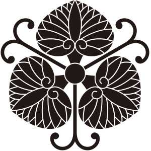 | 河骨紋は、浅い池や沼などに繁殖する河骨(こうほね)の葉や花をモチーフとした家紋。河骨は根茎が白くゴツゴツしており白骨に見えることから、その名がついた。江戸時代に将軍家の家紋として『葵紋』の使用が制限された際に、葵紋に似ている『河骨紋』の使用が増えたと考えれる。 |