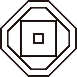 陰隅切り角に平釘抜紋は、『隅切り角に平釘抜』を輪郭のみで描く。