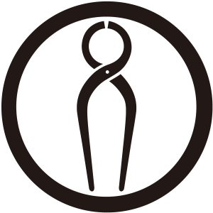 丸に一つ釘抜紋は、『閻魔釘抜』を描いて、その周りを通常の太さの丸で囲う。