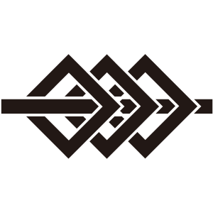 三つ釘抜閂紋は、3枚の『釘抜紋』の座金を横に重なるように並べて、その間に1本の棒を貫通させて、釘貫門を閉じる閂のような形に描く。