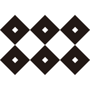 六つ釘抜紋は、6枚の『釘抜紋』を上下に3枚づつ並べて『真田六文銭』のような形に描く。