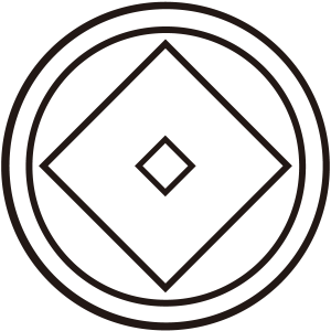 | 釘抜紋は座金をモチーフとした家紋。昔の釘はL字型で、後で抜くことを考えて「座金」と呼ばれる正方形の板に穴を開けた物を敷いていた。抜くときは座金に梃子を差し込むことで簡単に抜ける。 釘抜紋は一つ目結などの『目結紋』と区別しにくいが、比べて中の目が少し大きいのが釘抜紋である。 |