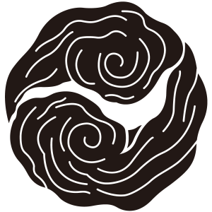 二つ雲巴紋は、巴形の2つの雲を、上下から向かい合わせるように描く。