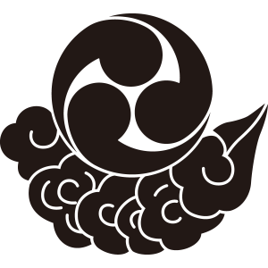 左三つ巴に雲紋は、霊芝雲の上に『左三つ巴』が乗ったような形に描く。