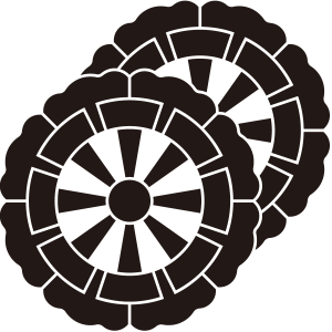 | 車紋は平安貴族が使用した御所車の車輪を文様としたもの。賞美的な意義により家紋となった。ちなみに、御所車の別名が源氏車である。日本で最も多い佐藤姓の家紋でもある。藤原氏秀郷流の佐藤氏の代表家紋。 |