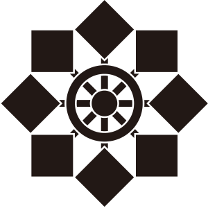 風車紋は、羽根車に8つのの羽を付けた形をシンボル化して家紋としたもの。