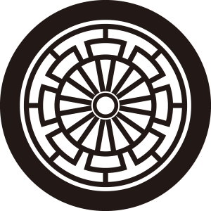 | 車紋は平安貴族が使用した御所車の車輪を文様としたもの。賞美的な意義により家紋となった。ちなみに、御所車の別名が源氏車である。日本で最も多い佐藤姓の家紋でもある。藤原氏秀郷流の佐藤氏の代表家紋。 |