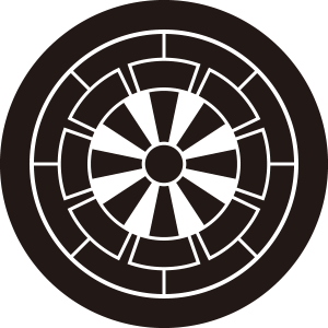 | 車紋は平安貴族が使用した御所車の車輪を文様としたもの。賞美的な意義により家紋となった。ちなみに、御所車の別名が源氏車である。日本で最も多い佐藤姓の家紋でもある。藤原氏秀郷流の佐藤氏の代表家紋。 |