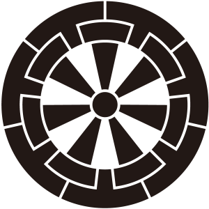 | 車紋は平安貴族が使用した御所車の車輪を文様としたもの。賞美的な意義により家紋となった。ちなみに、御所車の別名が源氏車である。日本で最も多い佐藤姓の家紋でもある。藤原氏秀郷流の佐藤氏の代表家紋。 |