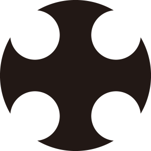 | 久留子紋とは、十字架をモチーフとした家紋でキリスト教の信者やその子孫により信仰的な意義により用いられた。豊臣秀吉によりキリスト教が弾圧されるようになると、信者たちは家紋の中に十字架をカムフラージュして信仰を続けた。聖アンドリュウ久留子は『祇園守』の中に形を留め、パテント久留子は『中川久留子』、花久留子は『花轡』、マルタース久留子は『矢筈十字』としてその形を残している。島原の乱のあと、幕府がより一層キリスト教の弾圧が強めたため、十字架紋も『轡紋』や『十の字紋』と呼び方を変えてその後も用いられた。 戦国時代にキリスト教が流行した摂津地方に多く見られる。 |