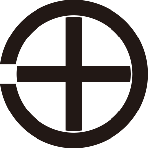 欠け輪に十字久留子紋は、『十字久留子』を描いて、その周りに左側が欠けた通常の太さの丸で囲う。
