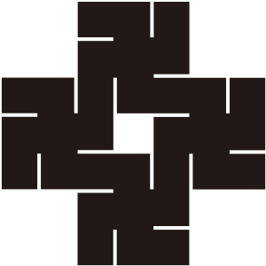 四つ持ち合い万字紋とは、四つの『左万字』を十字の形に配置して、先端が持ち合いの形に繋がるように描く。