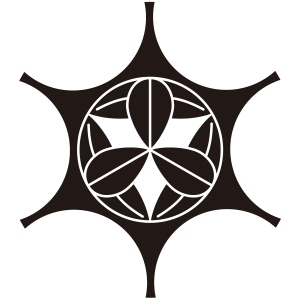 | 鞠鋏み紋は、蹴鞠(けまり)に用いられる鞠を形が崩れないように保管するための道具である「鞠鋏み」を意匠化した家紋。鞠鋏みの素材は板状で紋系ほど鋭く尖ってはいないが、形状の面白さから尚美的な意義で家紋となった。また、中心の円部分に他の家紋を描くことも多い。 |